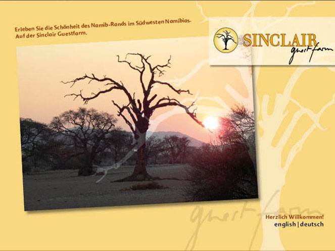Afrika beeindruckt den Reisenden vor allem durch seine Landschaft. Deshalb wurden Postkarten als Gestaltungsprinzip der Internetseite einer Guestfarm in Namibia gewählt. Zusammen mit der wüstengelben Hintergrundfarbe und den kurzen Copy´s entsteht so ein farbiges Bild dieses beeindruckenden Landes.